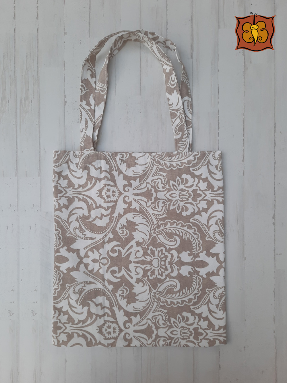 Una práctica Totebag hecha a mano con telas estampadas de diseños encantadores. Perfecta para cualquier cosa: hacer la compra, transportar cosas delicadas, como bolso o como organizador dentro de un bolso más grande.