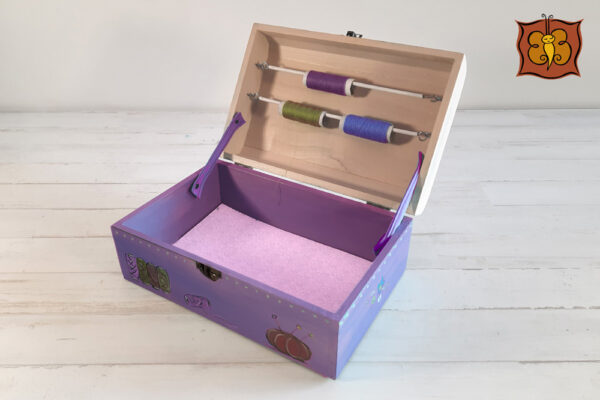 Encantador costurero hecho a mano, para poder tener todos tus materiales ordenados y a tu alcance. Una bonita caja que cumple una triple función: ordenar tu material de costura, decorar de una manera encantadora la estancia y… ¡hacer realidad tus sueños!